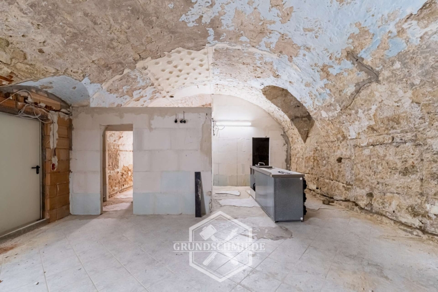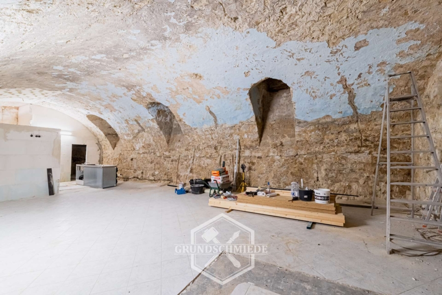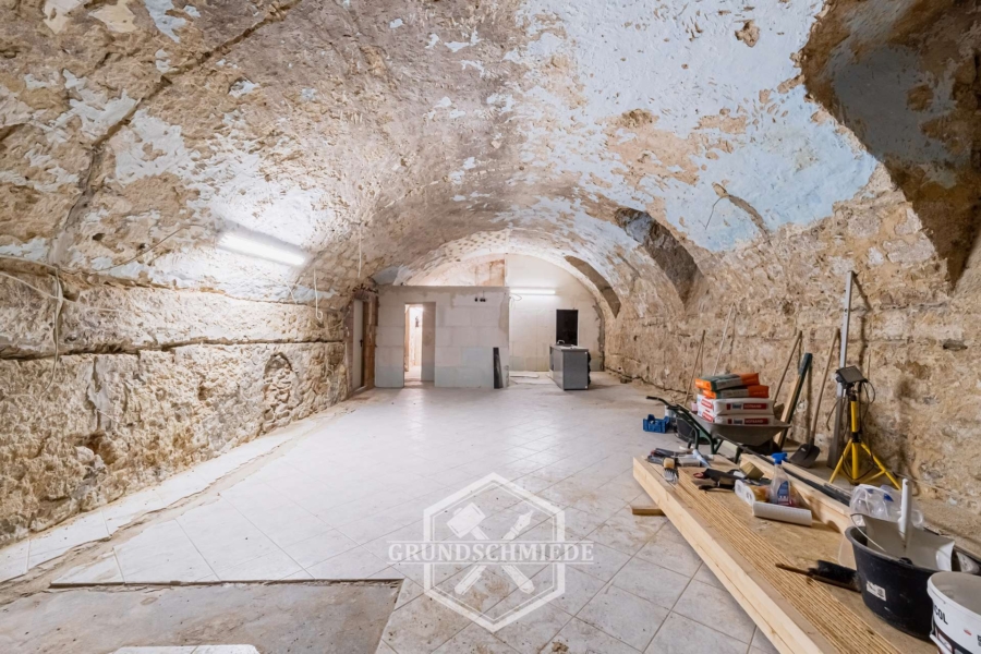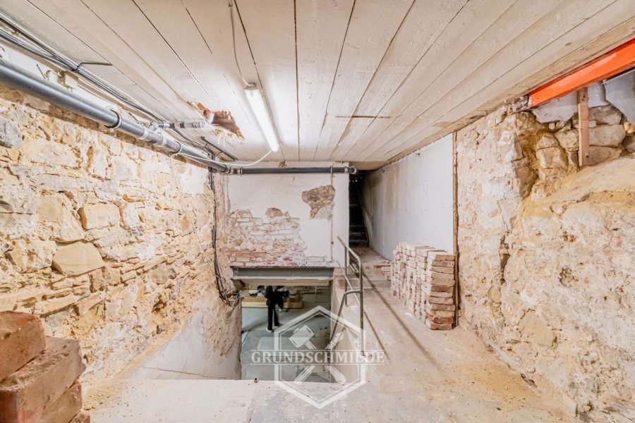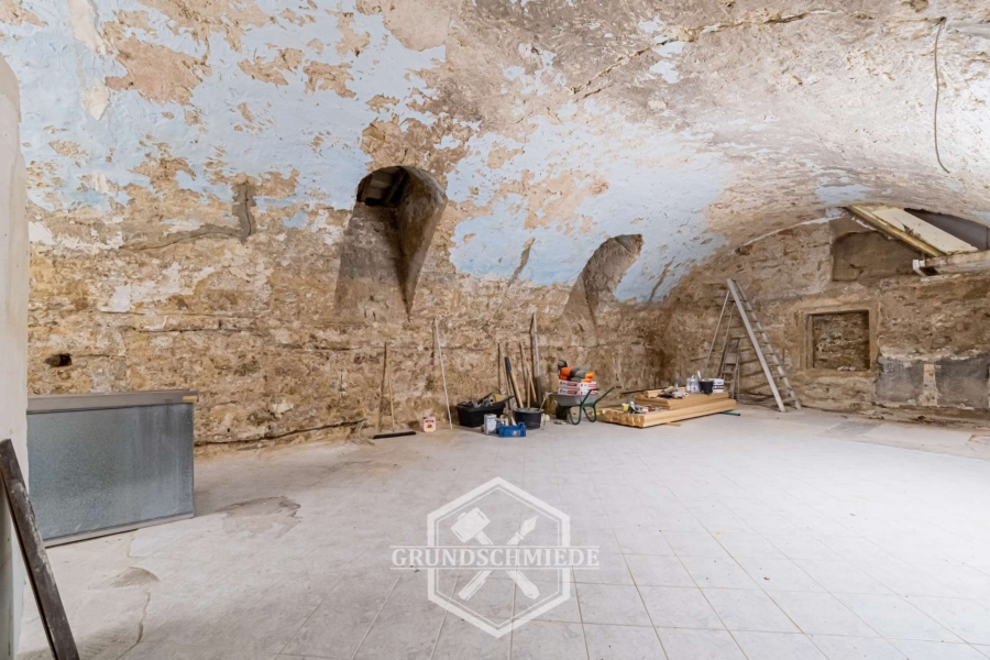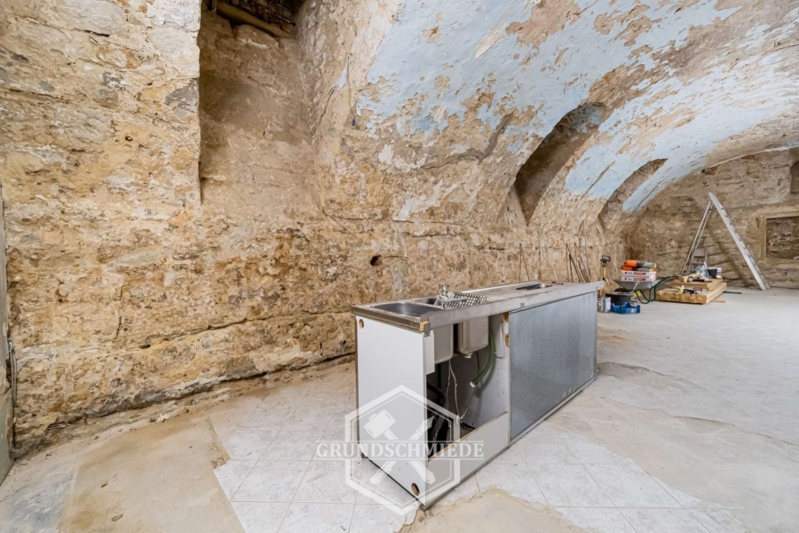 Der Keller befindet sich aktuell in sanierungsbedürftigem Zustand und bietet damit die ideale Grundlage, um ein individuelles und einzigartiges Ambiente zu schaffen. In Kombination mit der historischen Bausubstanz entsteht hier die Chance, eine unverwechselbare Location mit besonderem Charme zu entwickeln.