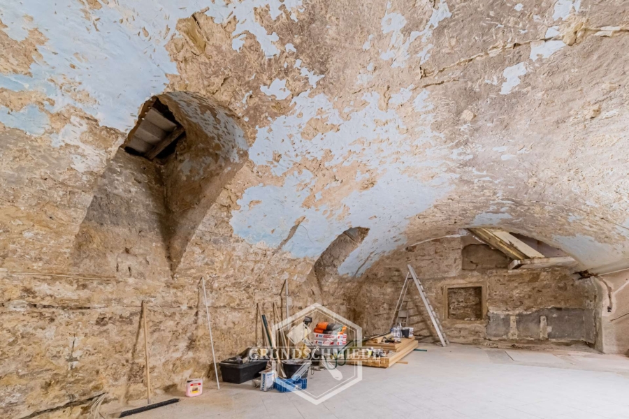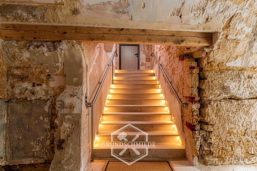 Der Zugang erfolgt seitlich am Haus und führt zunächst in einen Vorbereich, der sich ideal als Empfangszone oder Garderobe nutzen lässt. Von dort gelangt man über eine Treppe in den eigentlichen Gewölbekeller. Die beeindruckende Deckenhöhe von ca. 3,50 m sowie die historische Gewölbestruktur schaffen eine besondere Atmosphäre mit viel Potenzial für kreative Gestaltungsideen.