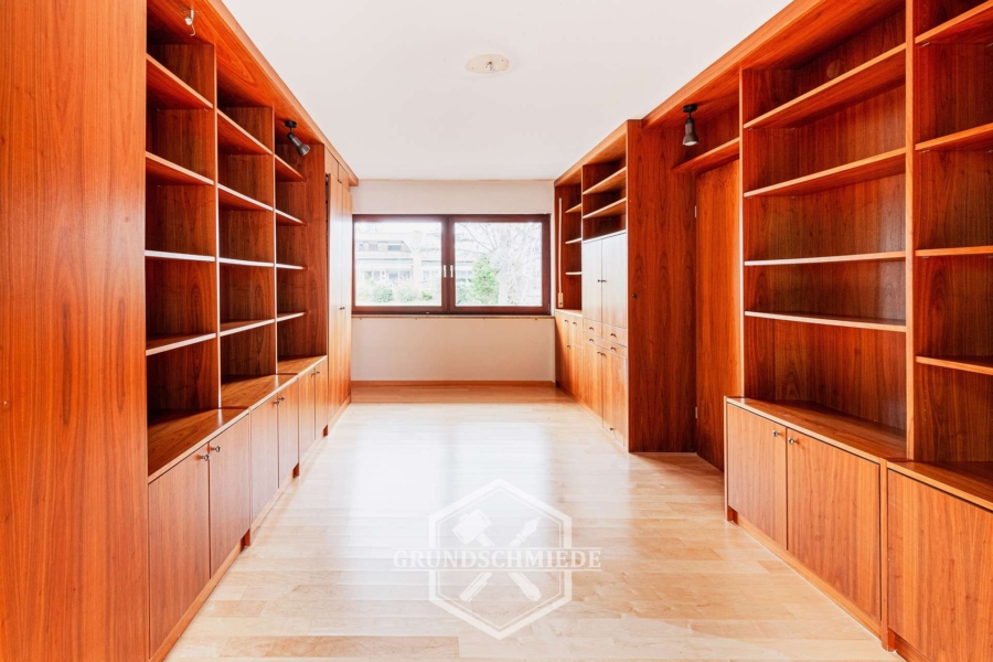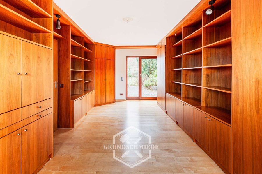 Angrenzend befindet sich ein hell geschnittenes Esszimmer sowie eine separate Küche mit angeschlossenem Abstellraum. Ebenfalls auf dieser Etage befinden sich ein Gäste-WC, ein Tageslichtbad mit Dusche sowie ein Ankleidezimmer, das alternativ auch als Schlafzimmer genutzt werden kann. Von diesem Raum aus besteht ebenfalls ein direkter Zugang zur Terrasse und in den Garten.