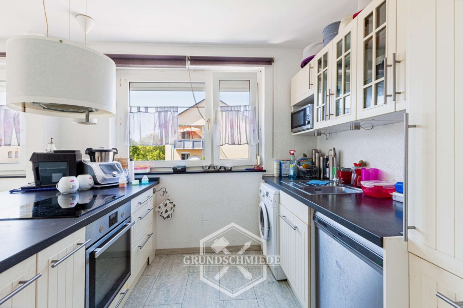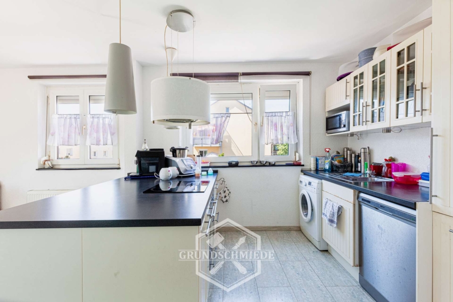Die separate Küche ist offen gestaltet und geht harmonisch in den Essbereich über. Dieser großzügige Raum lädt nicht nur zum Kochen, sondern auch zu geselligen Momenten mit Familie und Freunden ein. Durch die offene Verbindung entsteht eine angenehme Wohnatmosphäre mit viel Raum für gemeinsames Leben.