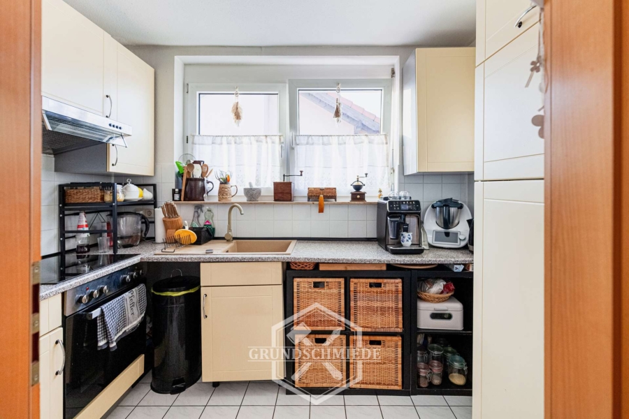 Die Küche ist separat gelegen und großzügig geschnitten, sodass ausreichend Platz zum Kochen und Arbeiten vorhanden ist. Die vorhandene Einbauküche gehört den Mietern und ist nicht Bestandteil des Kaufangebots.