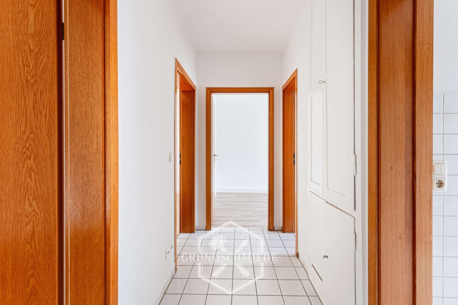 Im Flur bietet ein praktischer Einbauschrank zusätzlichen Stauraum für Alltagsgegenstände.
