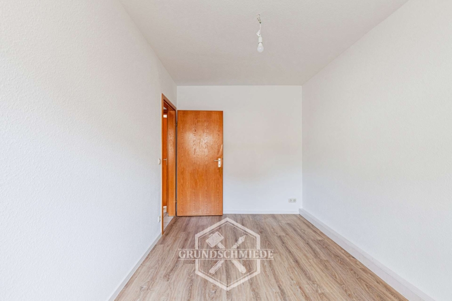 Das Schlafzimmer präsentiert sich großzügig geschnitten und ruhig gelegen – perfekt zum Entspannen. Dank der breiten Fenster gelangt viel Tageslicht in den Raum, ohne dabei an Behaglichkeit zu verlieren. Ein weiteres Zimmer eignet sich ideal als Kinderzimmer oder Büro. Auch hier sorgt ein großes Fenster für eine freundliche Atmosphäre, die zum Arbeiten oder Spielen einlädt.