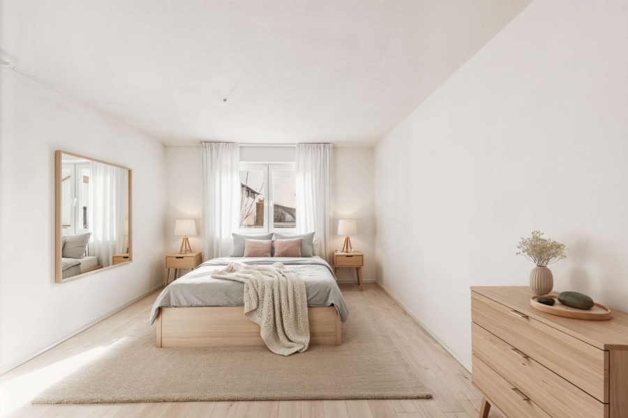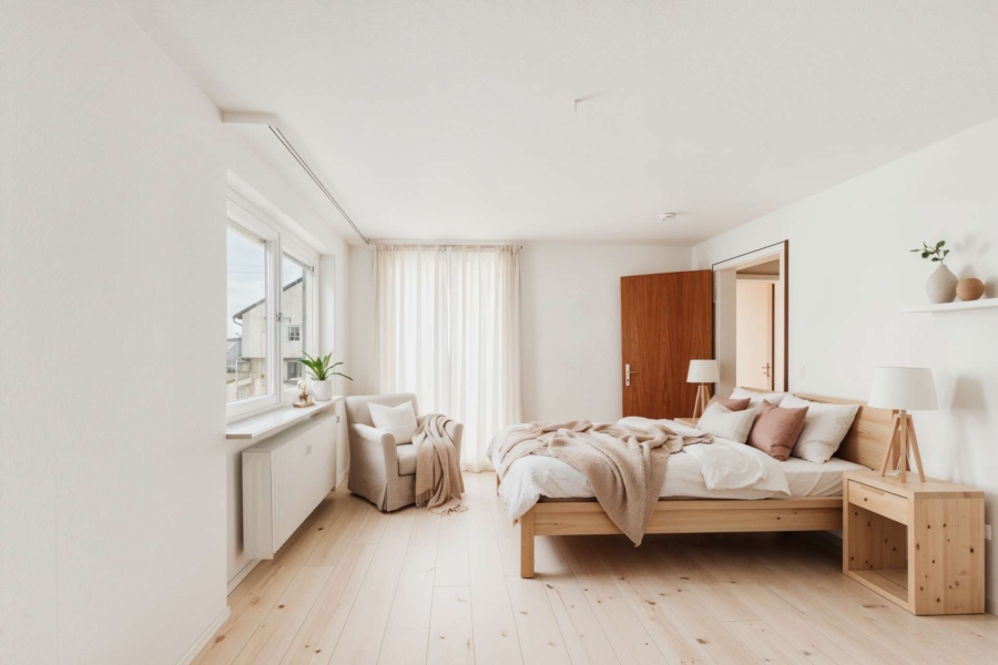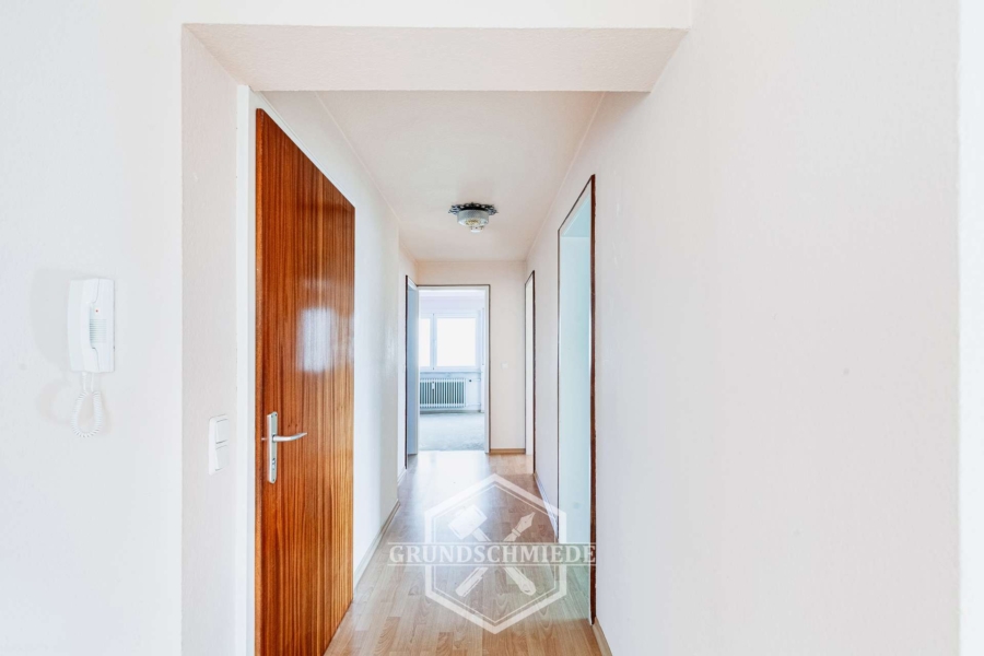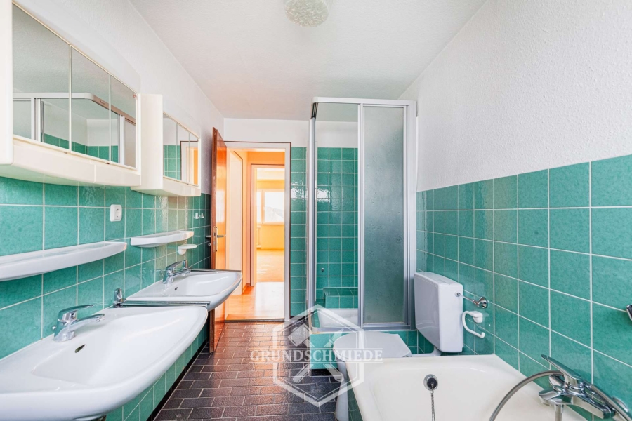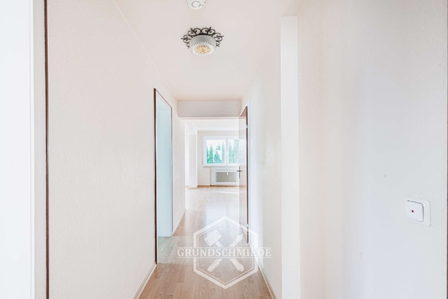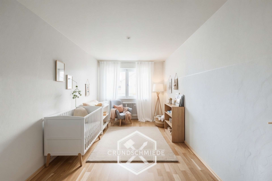 Die Wohnung verteilt sich auf 4,5 Zimmer, darunter drei Schlafzimmer und ein geräumiges Wohnzimmer. Das Tageslichtbad ist mit einer Dusche und einer Badewanne ausgestattet und vefügt über einen Waschmachinenanschluss.