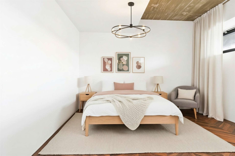 Von der Küche aus haben Sie direkten Zugang zu einer separaten Hintereingangtür, die Sie zu den Parkplätzen führt, was besonders praktisch und komfortabel ist. Auf dieser Etage befindet sich auch das Schlafzimmer, das durch seine ruhige Lage und den großzügigen Schnitt zu einem idealen Rückzugsort wird.