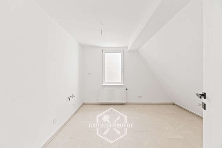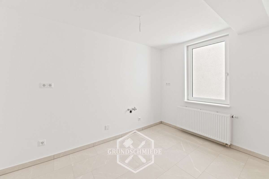 Die Anschlüsse für den Einbau einer Küche befinden sich in dieser Wohnung, in einem extra Zimmer.