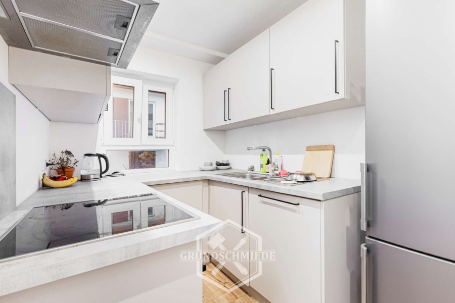 - Moderne Einbauküche inkl. Elektrogeräte sowie Kochutensilien